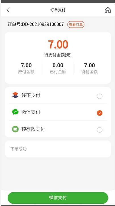当商家只开启微信支付,用户提交订单后系统自动发起微信支付;